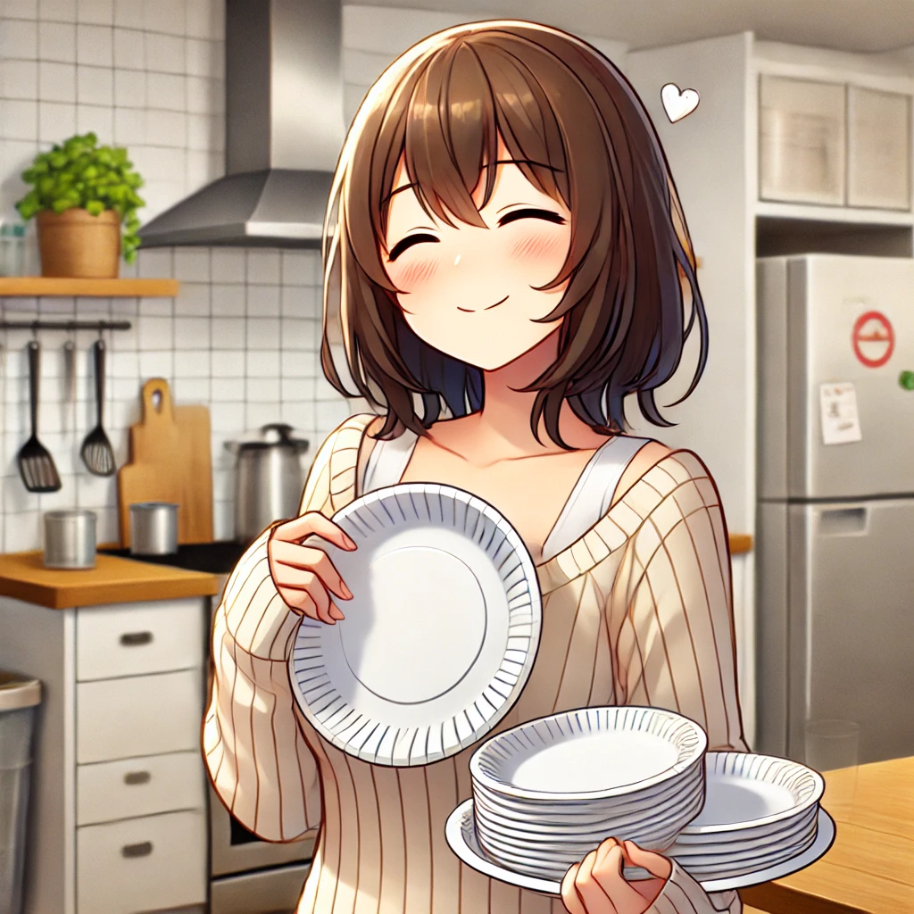 毎日紙皿を使うとコストが気になるけれど、実は水道代や洗剤代、さらには食器を洗う時間も考えると、そこまで高くないかも。例えば、1ヶ月分の紙皿代が1,000円だとしても、洗剤代や水道代、何より自分の時間を節約できることを考えたら、むしろお得かもしれない。